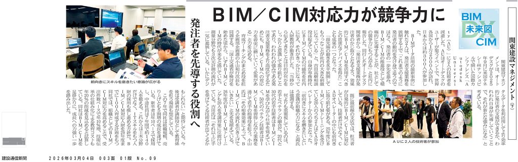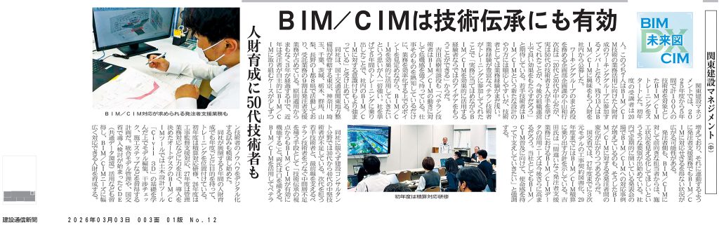 令和8年3月2日~4日発行の日刊建設通信新聞において、当社のBIM/CIMへの取り組みに関する記事が掲載されました。
